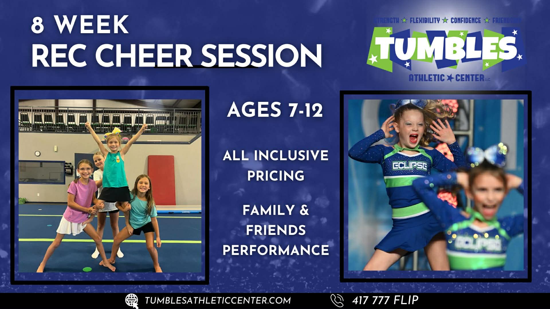 Our 8-week cheer session is the perfect introduction to cheerleading or a great way to build strong fundamentals in a fun, structured environment. Athletes will learn cheer basics while gaining confidence, strength, and coordination all in a high-energy class designed for progress, not chaos. Session includes t-shirt and a bow for the final performance! No practice the week of Spring Break. Session runs Jan. 29-March 27.